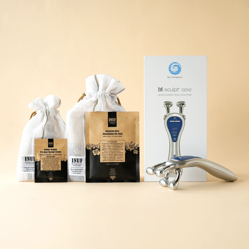 GET: Jawline Shaping Pre-mask Massage Essence & Bulgarian Rose Illuminating Silk Mask