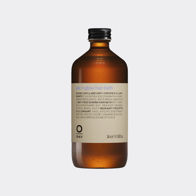 To regulate frizzy, thick and unstructured hair one must act on two fronts: infuse nutrients deeply in the hair fiber and polish the superficial surface. Frizzy and dull hair is, in fact, characterized by uplifted and irregular cuticles. When in this state, the hair surface does not reflect light and hair appears dull and opaque. SILK’N GLOW cleanser brings a first regulating effect. The nutritious treatment transforms hair matter in pure silk. The serum is the final touch that coats the hair with micro-particles of light. A synergy of restructuring, nourishing and silkening active ingredients. Biodynamic Oats, organic Cupuaçu butter and ethical Brazilian Nut makes for soft and shiny hair: pure silk.