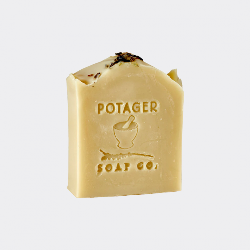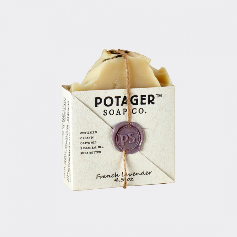 Potager natural lavender soap is handmade with organic essential oil of lavender, organic lavender buds, and other organic ingredients to create a fragrant and soothing experience that your skin will love! Handmade lavender soap is relaxing and cleansing. Let the relaxing scent of Lavender wash your cares away. This artisan soap is handmade in Massachusetts.