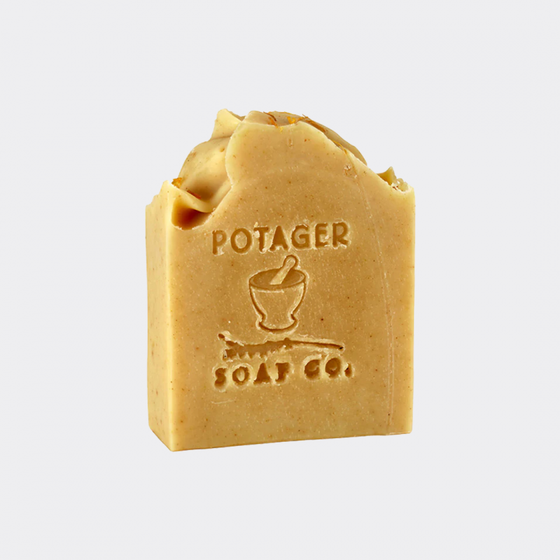 Silky smooth and moisturizing with a generous lather and scent that at once soothes and awakens, Potager’s Lemongrass Bar Soap with skin-nourishing calendula petals is a sensory treat. Potager’s castile soap is made using the cold process method in Concord, Massachusetts.